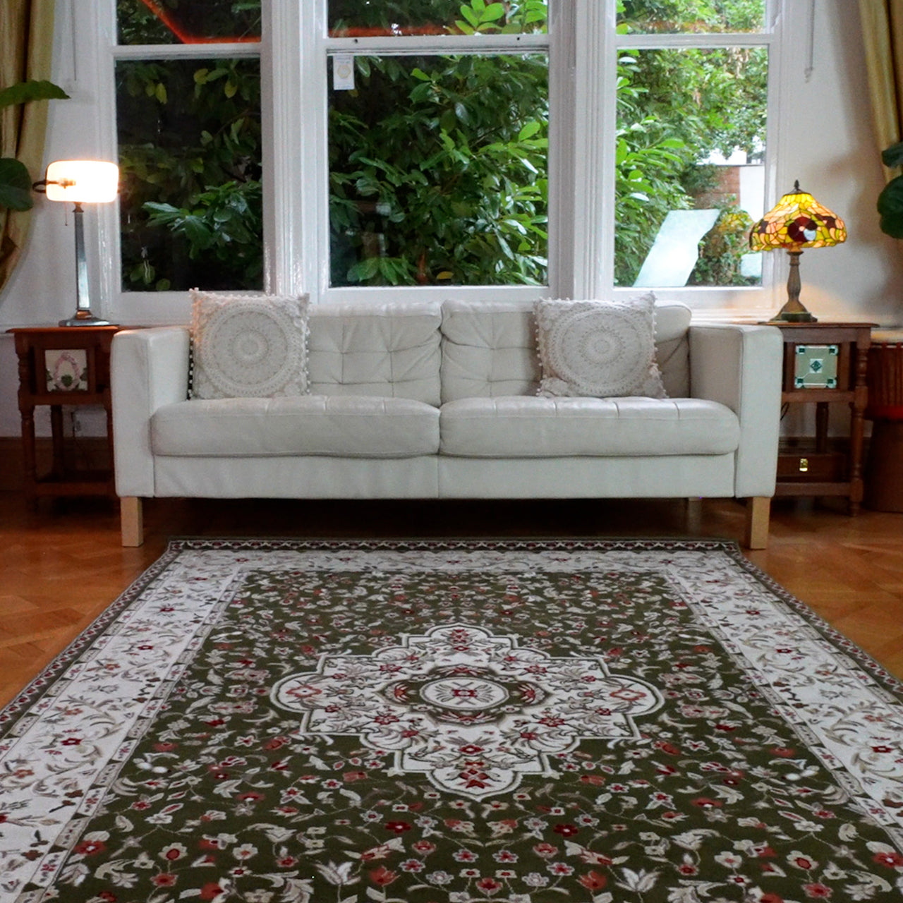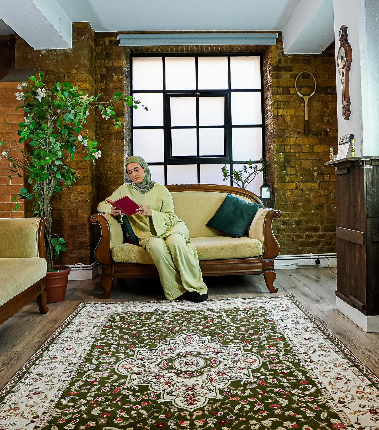 Our flagship product, the Rawda Rug is a beautiful design inspired by the Rawda of the holy sanctuary of Madina. The Rawda Rug features a traditional style design with intricately designed patterns and details. This rug has been crafted with the latest innovative design techniques that bring out its floral pattern and offer a soft and luxurious feel beneath the feet. The polypropylene and polyester fibres used in this rug ensure robust durability even in the busiest homes. All our rugs are free of harmful and toxic substances and have been produced in accordance with global ethical guidelines.